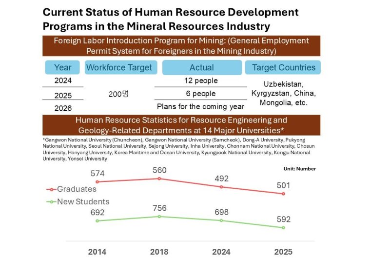 If local demand arises, training could potentially be pursued as a project under the Ministry of Education, yet no regional governments currently have plans to develop workforce initiatives. Universities, which previously merged or closed their resource engineering departments, also face increased pressure as support programs come to an end. For instance, Kangwon National University is set to admit only two students to its resource engineering major this year.