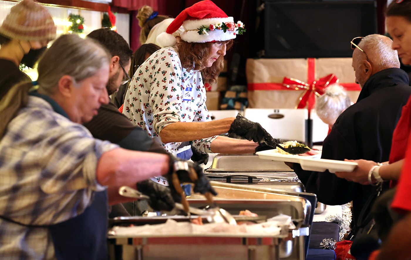 The event attracted a long line of eager participants on December 25, as locals waited for the doors to open. Volunteers like Brian Shulman returned year after year, noting the gratitude they feel while serving during the holidays. “When I volunteer for Thanksgiving, it’s a grateful, thankful experience,” Shulman said. “At the Christmas meal, every answer I have is yes.”