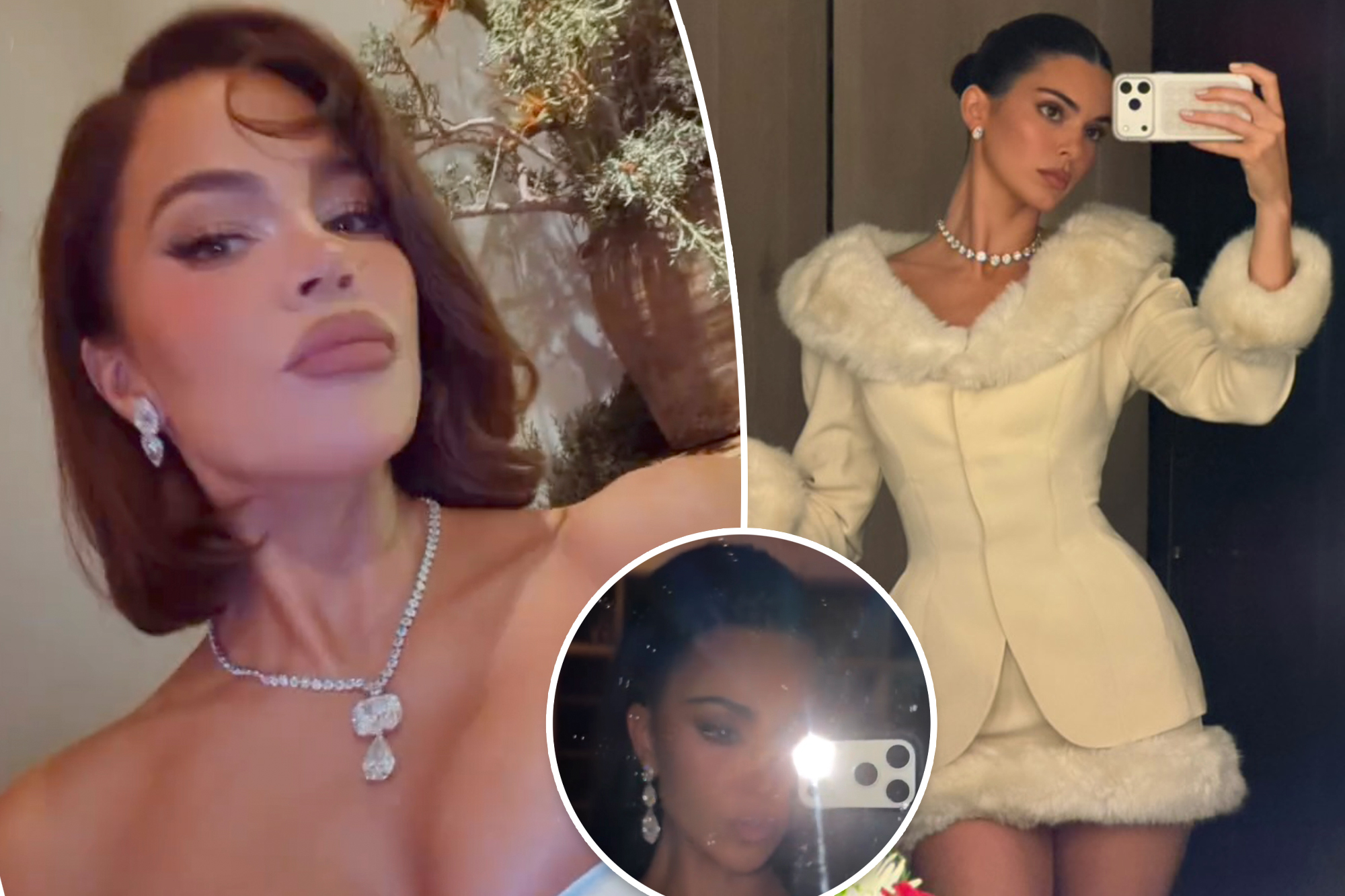 Kendall Jenner also embraced the festive spirit, dressing in white for the family gathering. She opted for a vintage Thierry Mugler jacket and miniskirt ensemble adorned with a diamond collar necklace, also from Lorraine Schwartz. The choice of a fur-trimmed jacket added a touch of elegance to her look, epitomizing high-fashion sophistication.