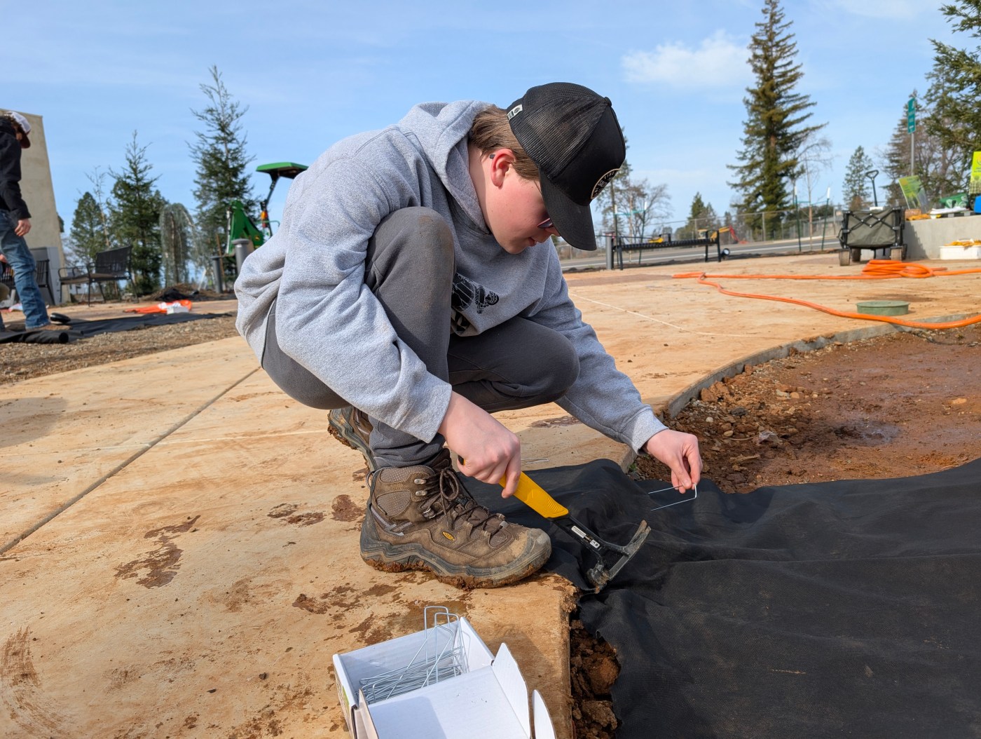 The long-anticipated Hope Plaza in Paradise, California, is making significant strides as volunteers and employees from the Paradise Recreation and Park District work collaboratively on its development. On January 30, 2026, activities included leveling the ground, raking gravel, securing tarps, and watering newly planted flora.