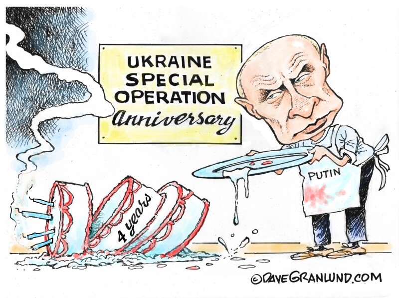 An editorial cartoon released on February 25, 2026, by cartoonist Dave Granlund brings attention to the ongoing situation in Ukraine, focusing on the actions of Russian President Vladimir Putin. The artwork aims to encapsulate the complexities and ramifications of the conflict, providing a visual commentary that resonates with both domestic and international audiences.