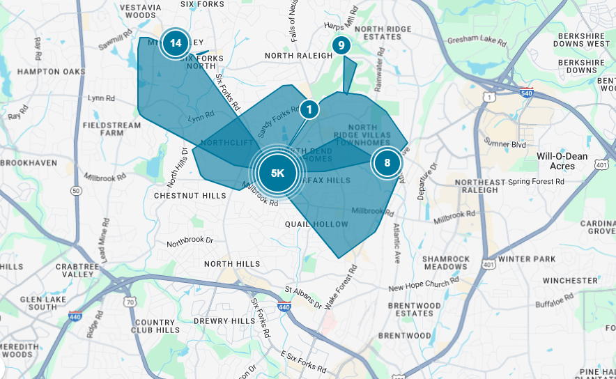 BREAKING: An urgent power outage has left approximately 5,000 customers in North Raleigh without electricity as of 7:30 p.m. today. The affected areas include parts of the Spring Forest region, specifically along Millbrook, Sandy Forks, Wake Forests, and Six Forks roads.