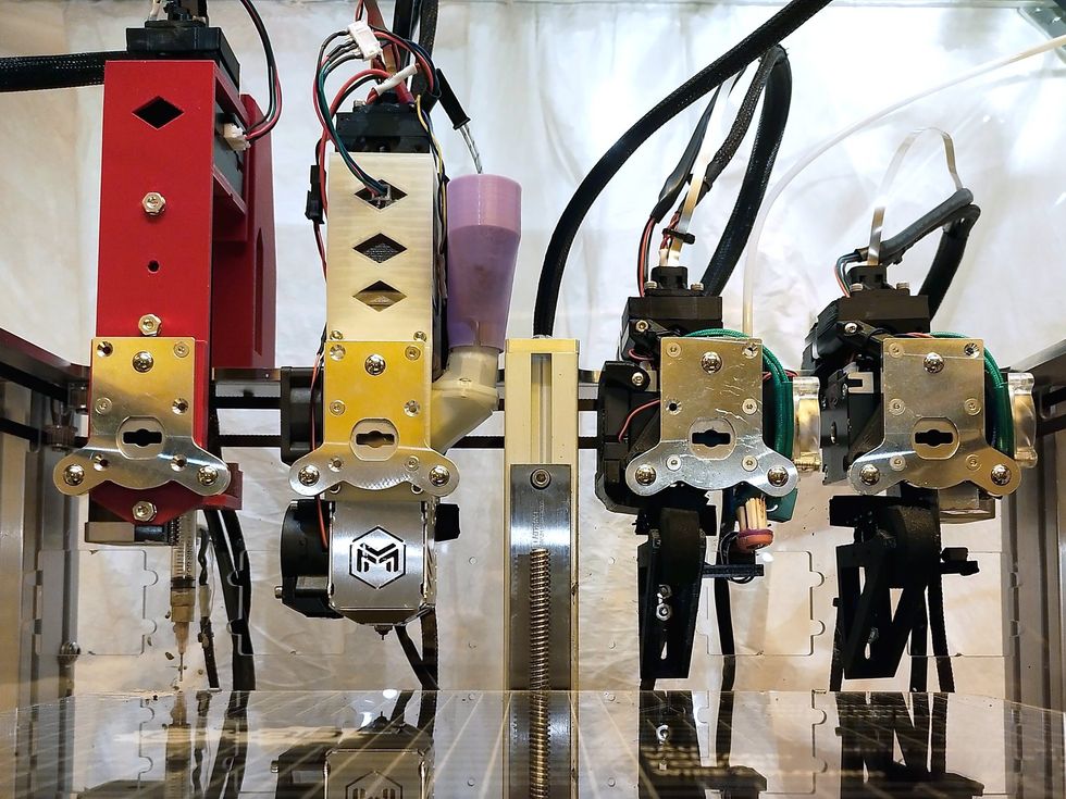 The MIT prototype features a multimaterial extrusion approach that enables the printer to switch between four tools, accommodating feedstocks with diverse properties. This includes a heater for curing ink, a filament extruder, a custom ink extruder, and a modified pellet extruder. The latter is particularly noteworthy as it permits higher concentrations of magnetic particles, improving the magnetic performance of printed components.